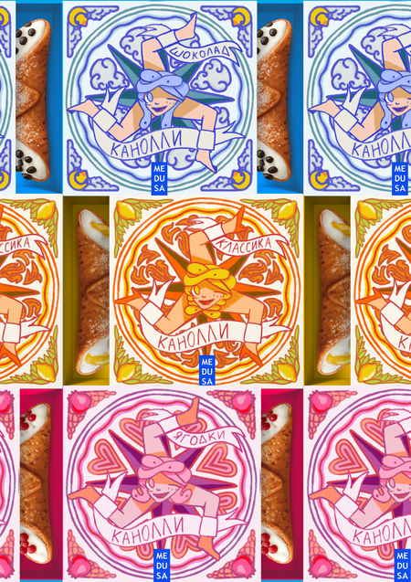 Так как блюдо хоть и традиционное для Сицилии, но новое для нашего рынка мне хотелось объединить традицию и современность. За основу была взята сицилийская мозаика и местный символ Тринакрия, которые были переосмыслены и объединены.