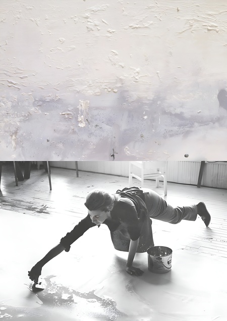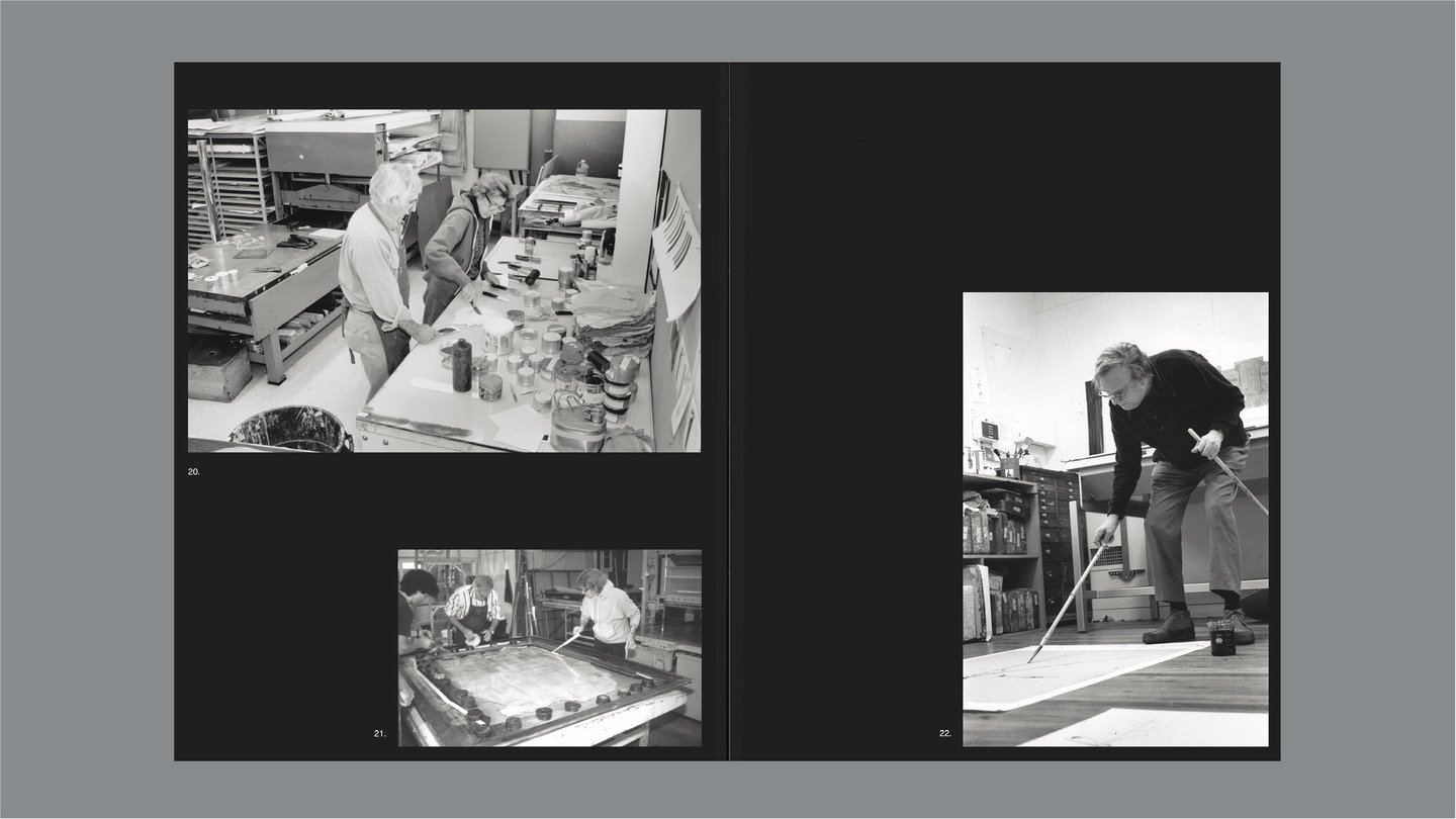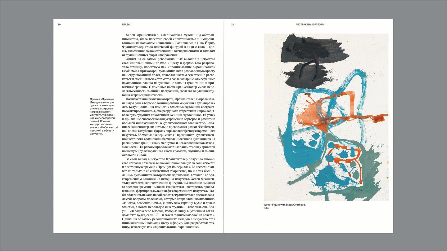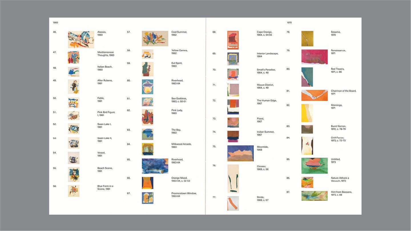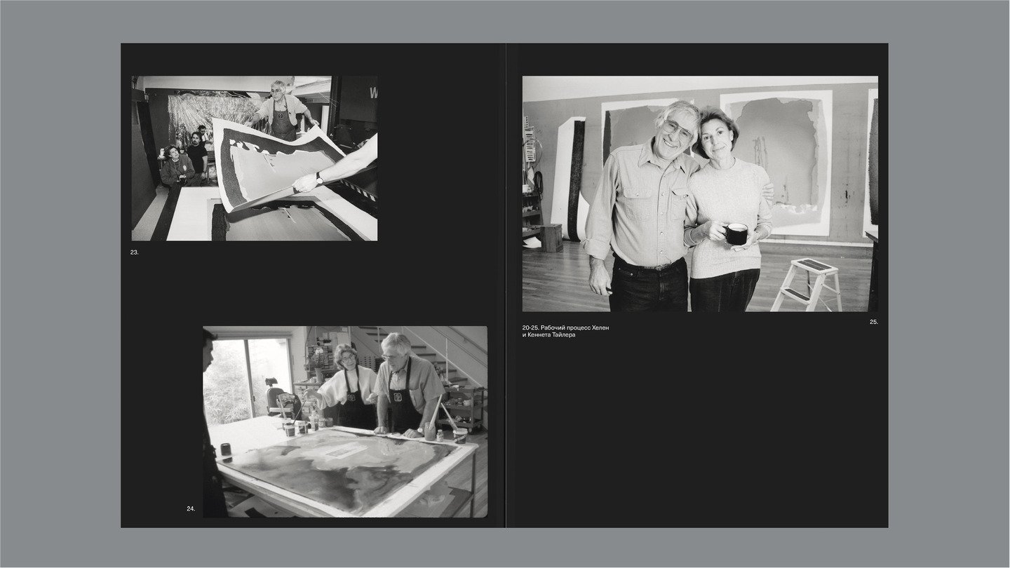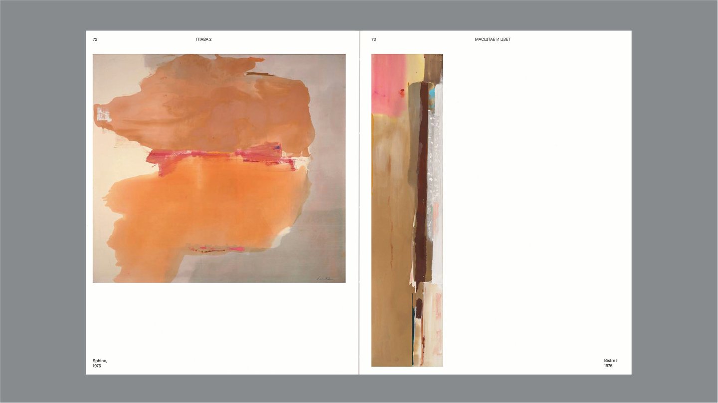 Работы Хелен Франкенталер поражают своим масштабом, поэтому в каталог располагаются фрагменты ее работы 1×1, чтобы показать формат произведения и текстуру материалов