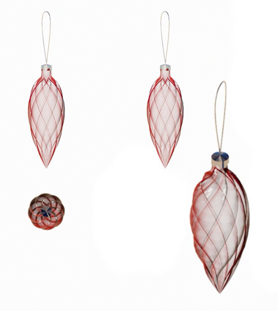 Игрушки ЛИК — это новогодняя серия лучепреломляющих объектов, вдохновлённых атмосферой театра и ощущением праздника, знакомого с детства. Формы легко, интуитивно считываются, основная суть в материале. Под воздействием освещения поверхность начинает переливаться спектром, плавно меняя оттенки от фиолетового к красному и от красного к жёлтому. Цвет не закреплён — он постоянно изменяется в зависимости от угла взгляда, интенсивности света и движения, создавая ощущение сценического эффекта, свет словно оживляет предмет. В коллекции стекло по разному взаимодействует с отражающим материалом, образуя совершенно разные игры света.