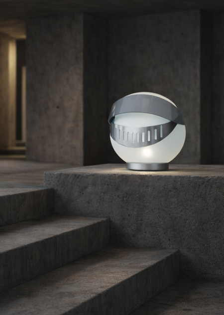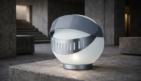 Лампа вдохновлённая рыцарским забралом и тем как оно модернизировалось сейчас, ведь это стало вещью без которой не обходятся мотоциклисты и гонщики. Она отсылает к образу средневекового шлема рыцаря, но переосмысленного через язык современного индустриального и минималистичного дизайна.