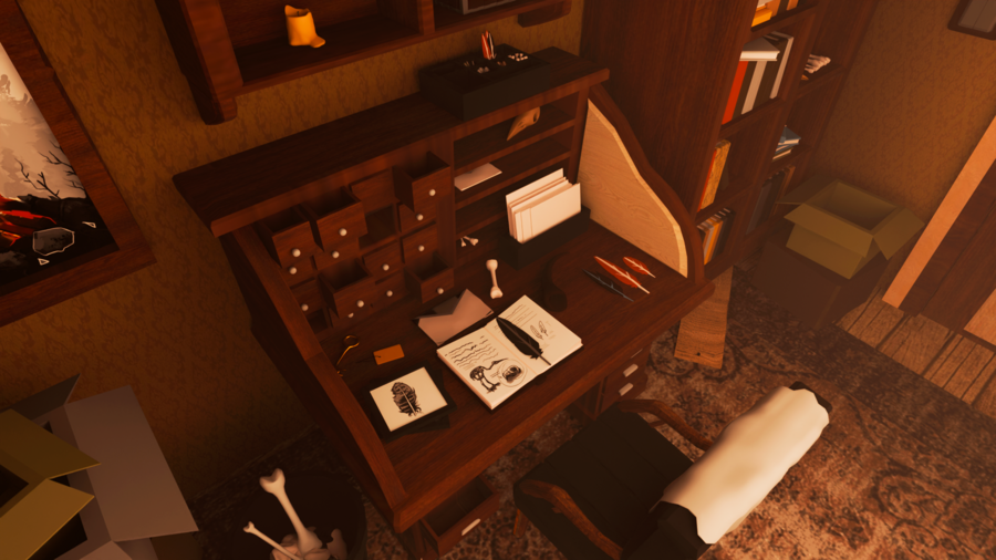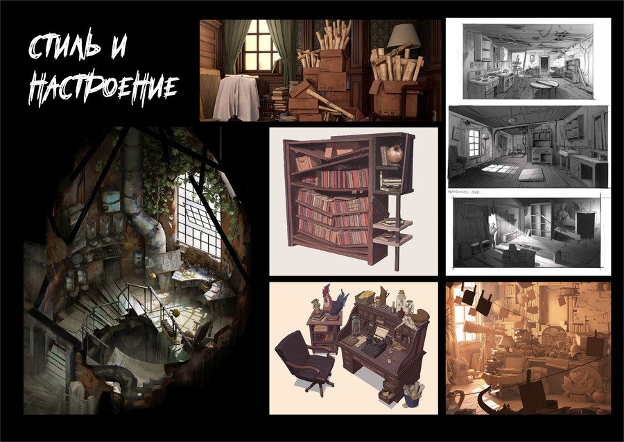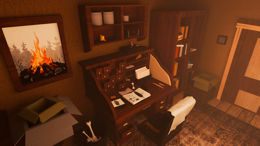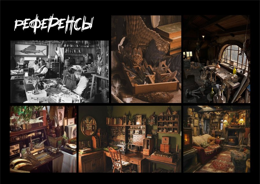 Дом посреди леса хранит в себе множество секретов. Некоторые комнаты в нём заброшены, но эта всё ещё используется мастером в качестве мастерской и небольшого музея для необычных звериных коллекций. Мы — его незваный гость, наблюдатель со стороны. К нашему приходу не прибирались и не готовились.