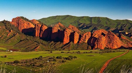 Джеты-Огуз — одна из самых узнаваемых природных достопримечательностей Кыргызстана, расположенная в горной долине недалеко от Иссык-Куля. Название переводится как «Семь быков» — по форме семи массивных красных скал, вытянувшихся вдоль ущелья. Эти скальные образования давно стали не только географическим ориентиром, но и важной культурной точкой, местом остановки, размышления и внутреннего равновесия.