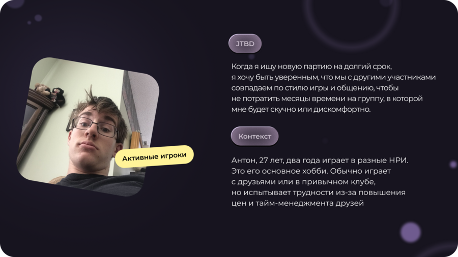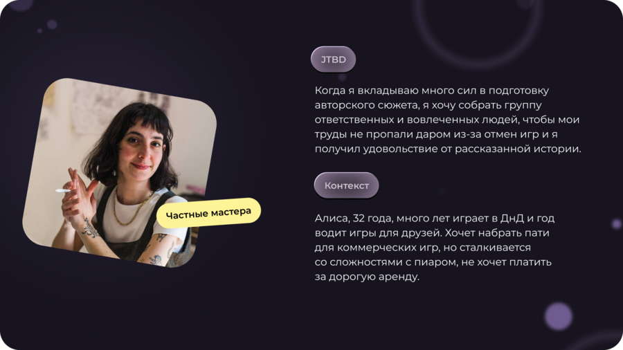 Roll/Match — Приложение-агрегатор, которое помогает игрокам в НРИ находить подходящих Мастеров, сопартийцев и кампании благодаря прозрачным профилям, тегам, рекомендациям и открытому рейтингу участников, объединяя разные ролевые системы и форматы — от онлайн до офлайна.