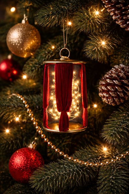 Это застывший театральный элемент. Не шар, не звезда, а портал сцены. Занавес в театре — это граница между реальностью и искусством, за ним происходят чудеса, а в новогоднюю ночь даже взрослый верит в чудо.