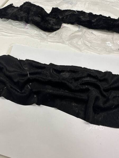 Из основных материалов был выбран тонкий бархат за его устойчивость к преобразованиям, а также тонкое черное эластичное кружево с наиболее прозрачным рисунком.
