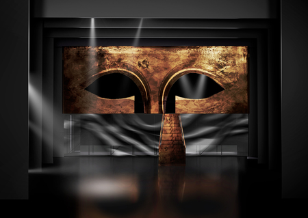 Мерч строится на образе главной декорации — занавеса в виде древнегреческого шлема. Отверстия в шлеме для глаз, превращены в отдельные модули — броши. Эта система работает как конструктор: минимальный набор элементов можно комбинировать разнообразными способами, создавая броши с разным характером — от сдержанных, лаконичных до эмоциональных и драматичных.