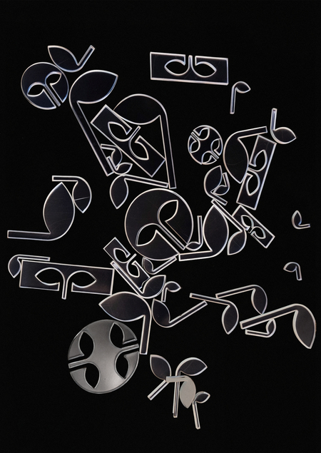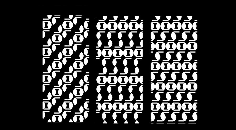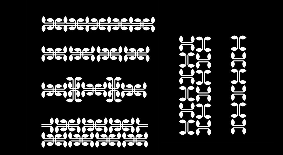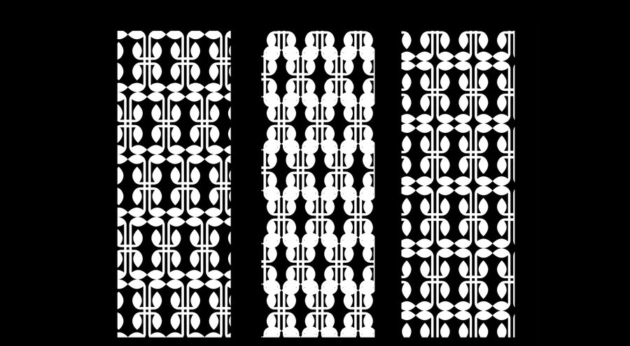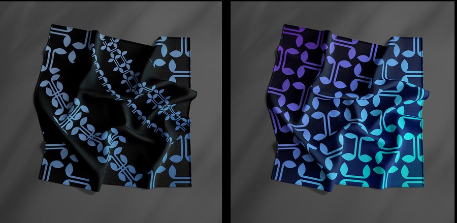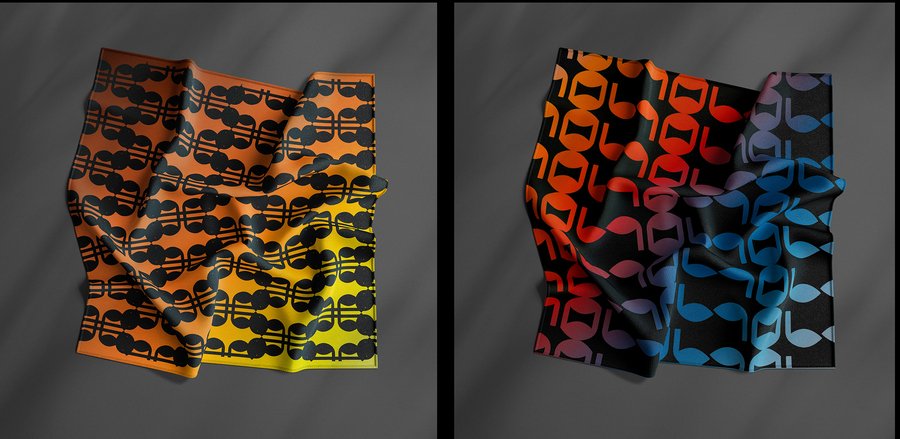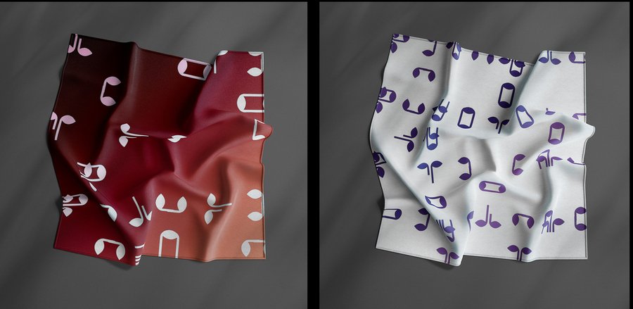 Базовый модуль, уже заложенный в системе брошей, переосмысливается в плоскости ткани, где получает иное ритмическое и эмоциональное звучание. Через повторение, масштабирование и комбинирование формы глазниц создаются разнообразные орнаментальные композиции.