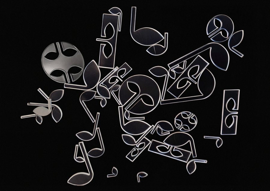 В качестве материала выбран прозрачный акрил толщиной 5 мм. Так же был разработан макет для резки в векторном редакторе. Резка выполнялась на лазерном станке.