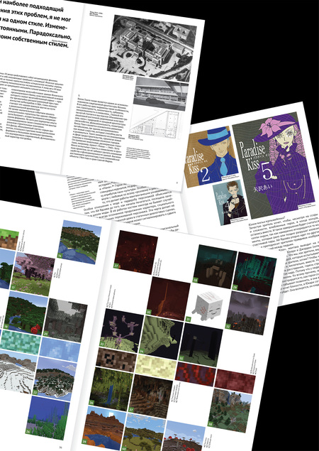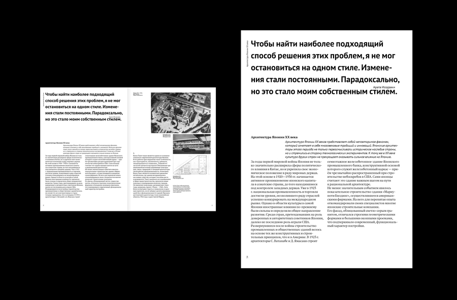 Проект состоит из нескольких серий экспериментальных макетов. В каждом случае тема задаёт уникальный графический язык. Эти развороты — исследование того, как меняется подход к вёрстке в зависимости от типа издания.
