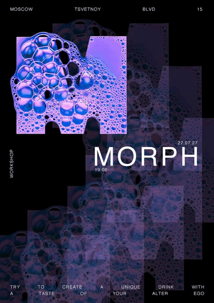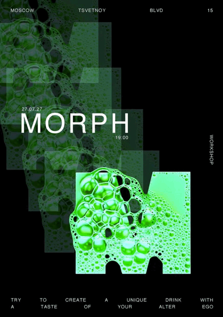 MORPH — бар, где каждый может выпустить внутренний мир наружу и, выпив вкусные напитки, пообщаться со своим альтер эго как с реальным человеком. Это место для тех, кто хочет заглянуть вглубь собственной личности, встретиться лицом к лицу с самыми сокровенными мыслями или просто побеседовать с альтернативной версией себя. Каким будет твое альтер эго и какие тайны оно хранит?