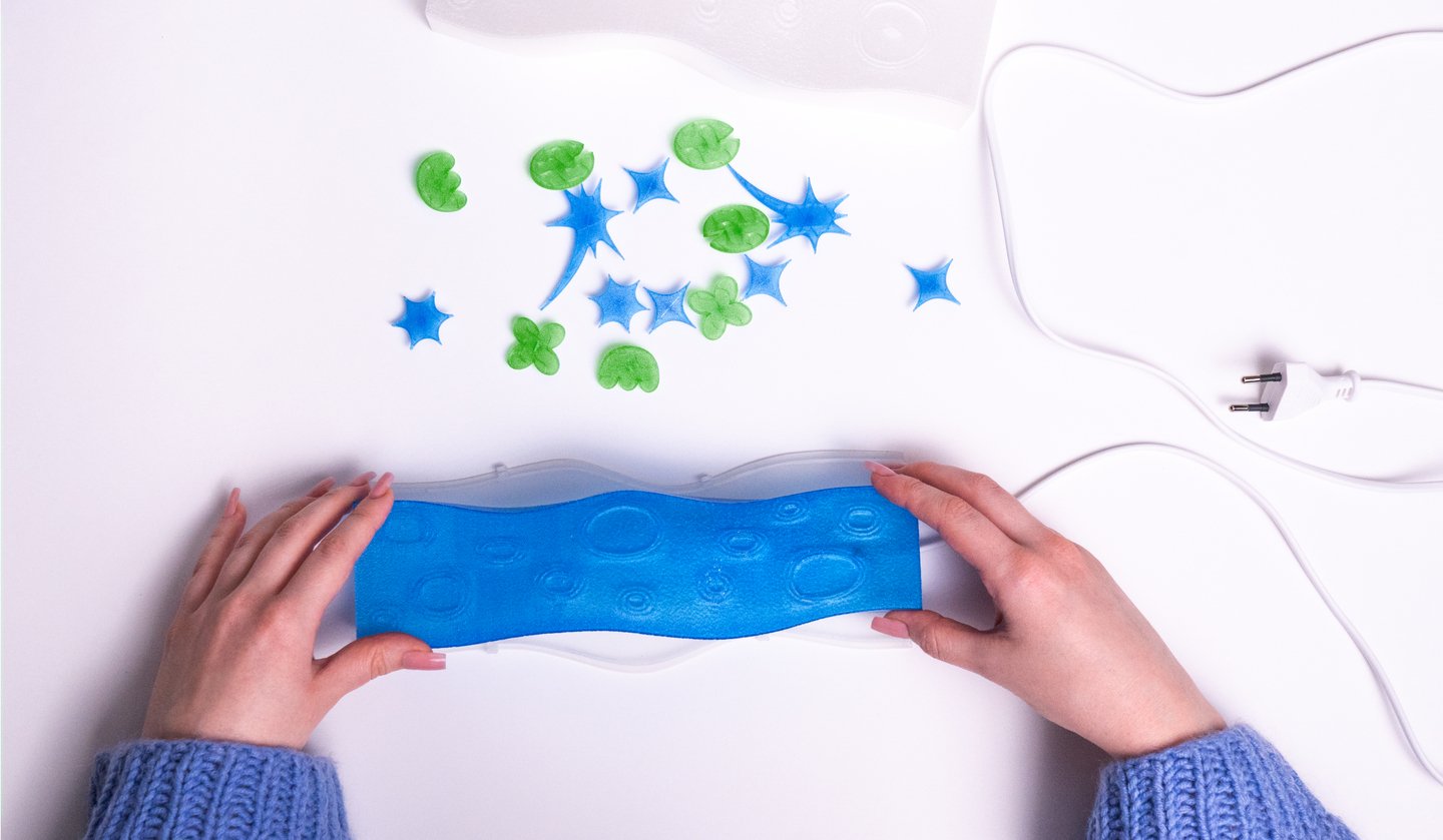Главной особенностью светильника являются модульные элементы — пины, которые можно менять в зависимости от настроения