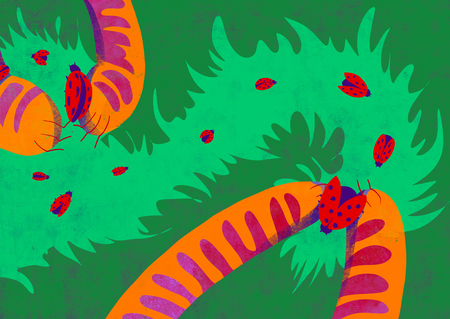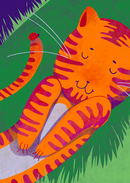 Книжка-картонка для детей от 3-х лет. История о том, как полосатый хищник нашёл нового друга — пятнистого насекомого.