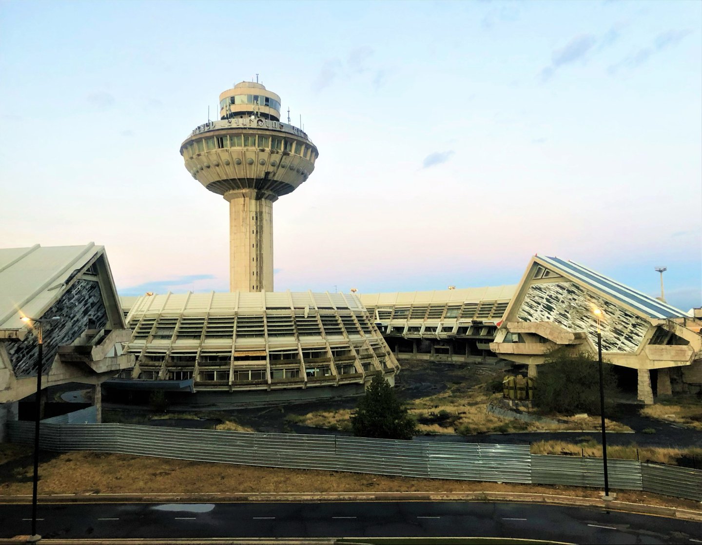 Внешняя и внутренняя отделка выполнена розовым туфом (является символом Еревана). На стенах висят фотографии построек.