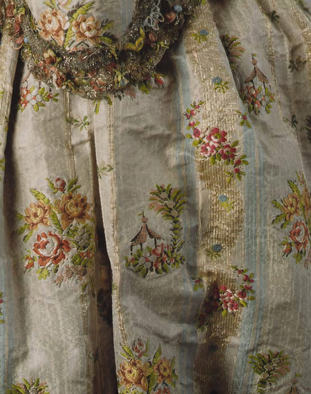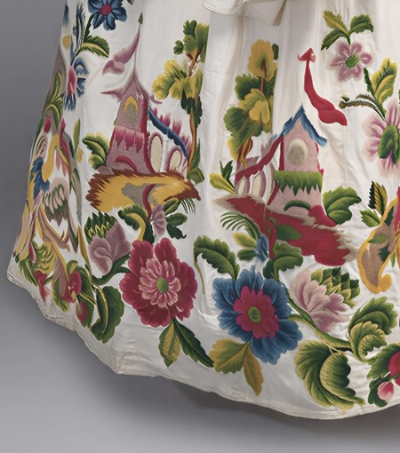Китайский шёлк начинают использовать для женских жакетов, корсажей, домашней одежи и небольших аксессуаров. Орнаменты упрощаются, цвета слегка трансформируются, но их происхождение остаётся считываемым. Это становится первым моментом, когда Европа не просто смотрит на Китай, но и носит его — пусть и в интерпретированной форме.