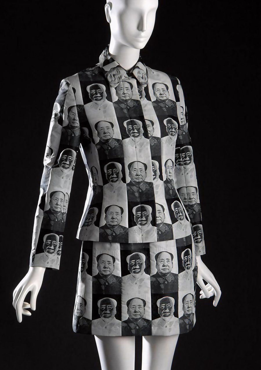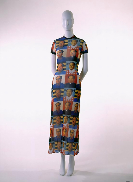 Политическая история Китая середины XX века встраивает в эту модель новые смыслы. Строгость революционной эстетики, унификация силуэта и графическая выразительность печатной культуры превращаются в новые модные цитаты. Платье Dior «Quiproquo» демонстрирует, как каллиграфия становится знаком дисциплины, а в 1995 году Vivienne Tam переводит фигуру Мао в плоскость массовой иконографии, соединяя её с эстетикой молодёжного стрит-арта. Так политический символ оказывается переработан модой и включён в глобальный визуальный контекст.