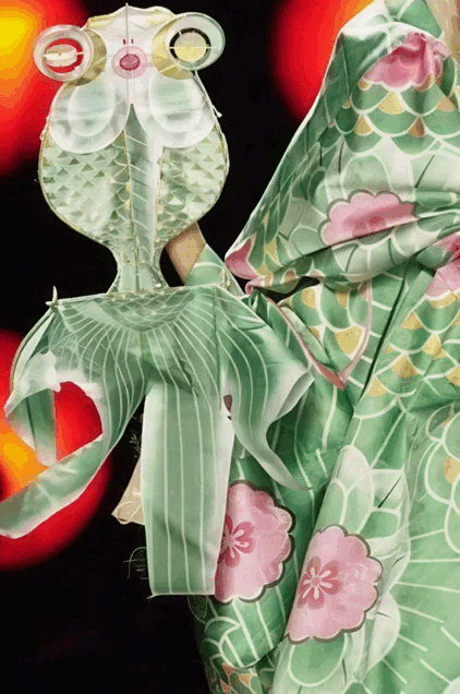 Упрощённые кимонообразные формы используются как конструктивная цитата, создающая графичность и фронтальность силуэта.