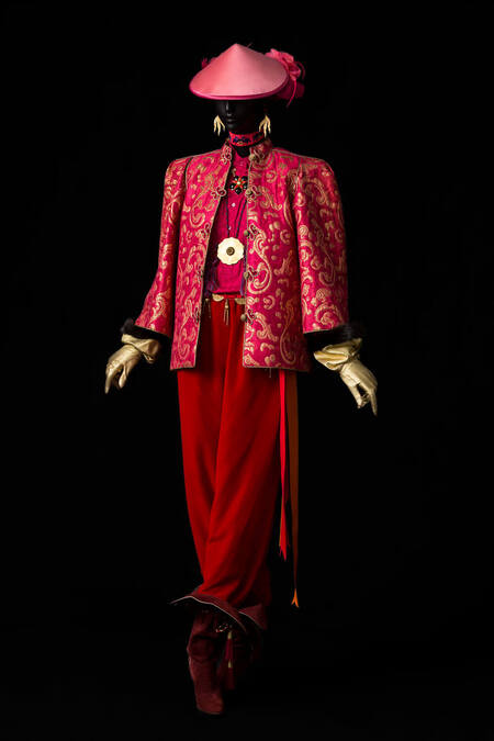 Он строит не историческую реконструкцию, а зрелищную визуальную фантазию, где китайская эстетика превращается в спектакль haute couture. Цветовая палитра — красный, золотой, нефритовый — усиливает эффект «ритуальной роскоши».