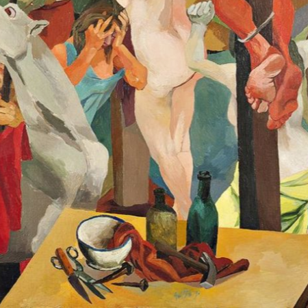 Повернутые лица и инструменты для пыток на картине «Распятие» Ренато Гуттузо