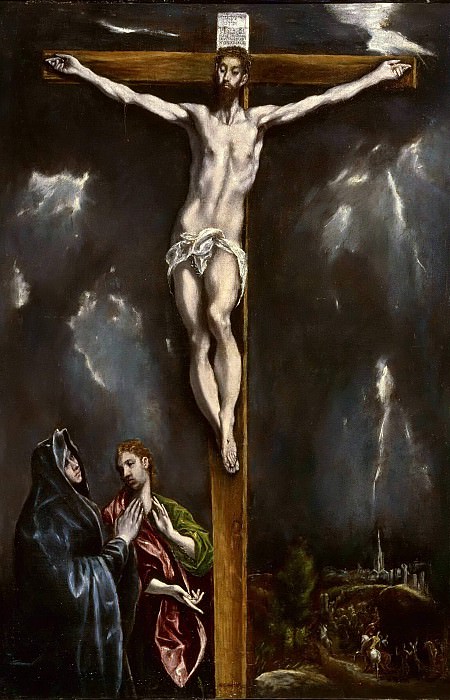 «Распятие» Марк Эрнст, 1913 г., музей Вальрафа-Рихарца, Кельн (слева); «Распятие Христа» Эль Греко, 1596–1600 гг., Художественный музей Джона и Мейбл Ринглинг, Сарасота (справа)