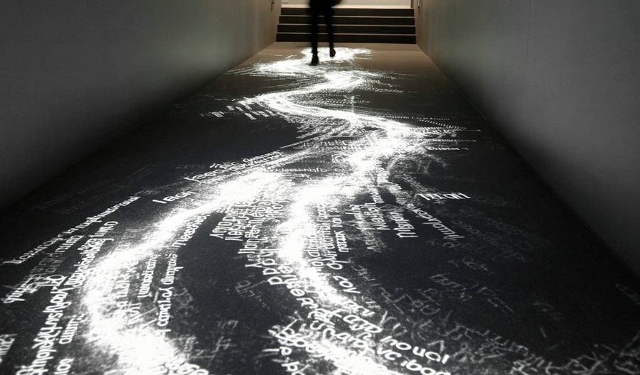 Личным голосом для зрителей становятся фразы, периодически покрывающие все пространство. Словно навязчивая мысль, скрыться от которой — невозможно. Делятся они также по драматургическим точкам и служат подсказками.