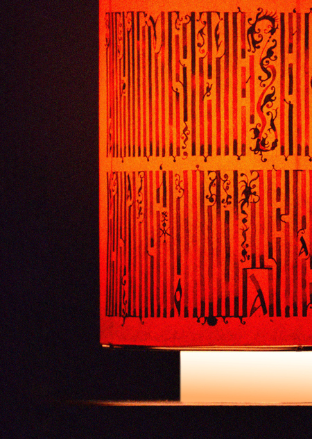 Мне захотелось продемонстрировать, как свет проявляет себя, проходя сквозь материалы и какое при этом может создаваться настроение, учитывая рукописи на поверхности материала.