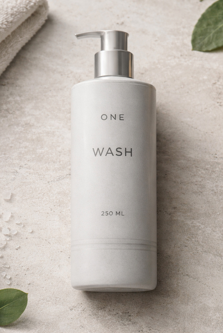 ONE — это бренд функционального ухода за телом, который убирает всё лишнее. Только чистые формы, простая цветовая система и ясная типографика.