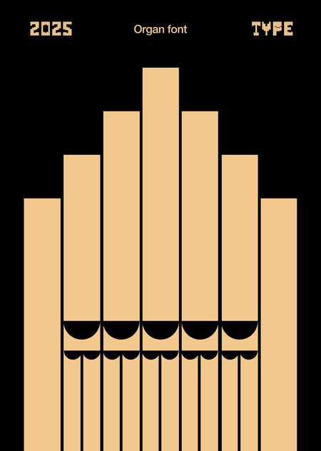 Organ Font — шрифт, вдохновлённый архитектурой и звучании органной музыки. Его вытянутые буквы работают как музыкальные регистры, создавая ритм и вертикальную структуру. Типографика передаёт монументальность, акустику и строгость органного звучания.