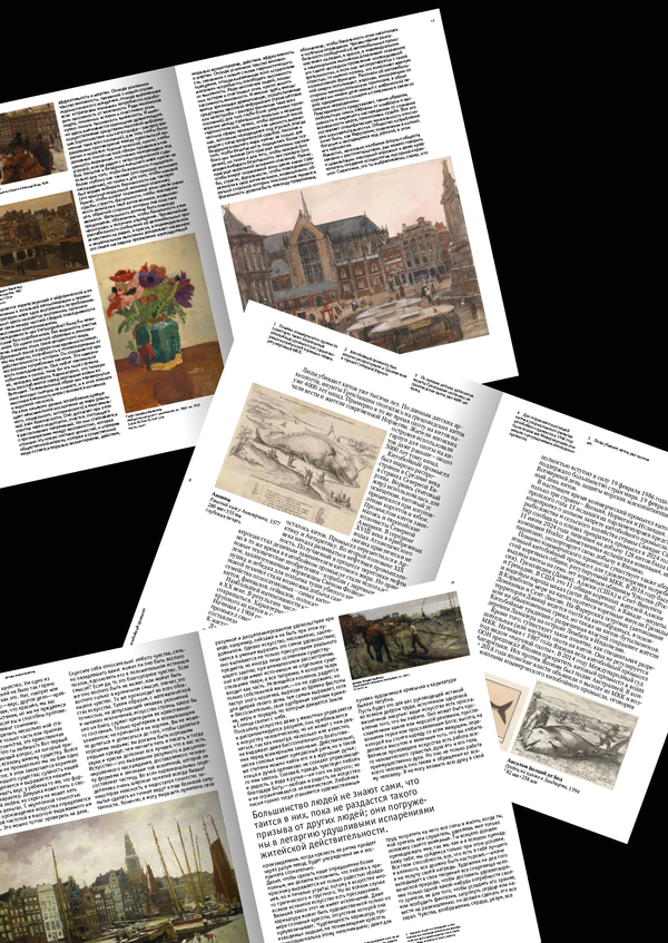 Проект представляет собой набор серии макетных экспериментов, где каждая тема получает собственное графическое решение. Развороты показывают, как можно работать с многостраничным изданием в зависимости от его характера—будь то спокойная текстовая книга или насыщенный визуальный каталог.