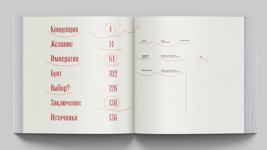 С каждой главой книги и с каждым новым десятилетием количество стандартов красоты множится, пока не происходит бунт. Он создаёт видимость свободы, становясь новым кругом старой истории