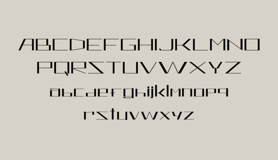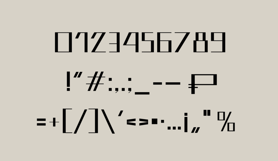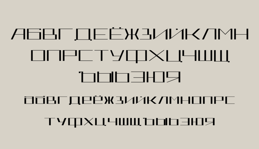 Это геометрический шрифт с жёстким, индустриальным характером. Он построен на простой модульной сетке и сочетает тяжёлые, массивные формы с тонкими линиями.