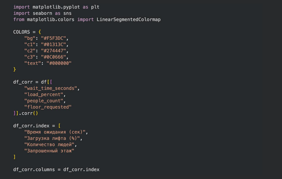 • Корреляционный анализ — проведён для оценки силы связей между временем ожидания и ключевыми факторами: загрузкой лифта, количеством людей и запрошенным этажом. Корреляционная матрица позволила дать быстрый сравнительный обзор влияния факторов на время ожидания и выявить наиболее значимые из них.