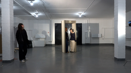 Одновременно с этим постоянный звук становится фоновым, возникает привыкание к предупреждению, к сигналу, а значит возникает резистентность к системе власти. И вместе с тем звук рамки затихает, «успокаивается», только когда человек оказывается «под ней». Как художники мы воспроизводим принцип управления, но не осуществляем его.