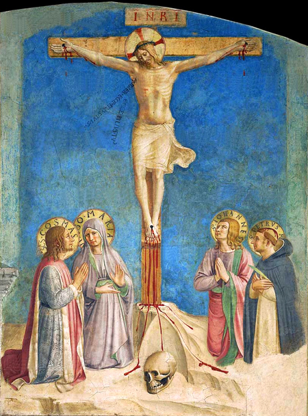 Распятие Христа со святой Марией, черепом и святыми. Фреска монастыря Сан Марко (1441)