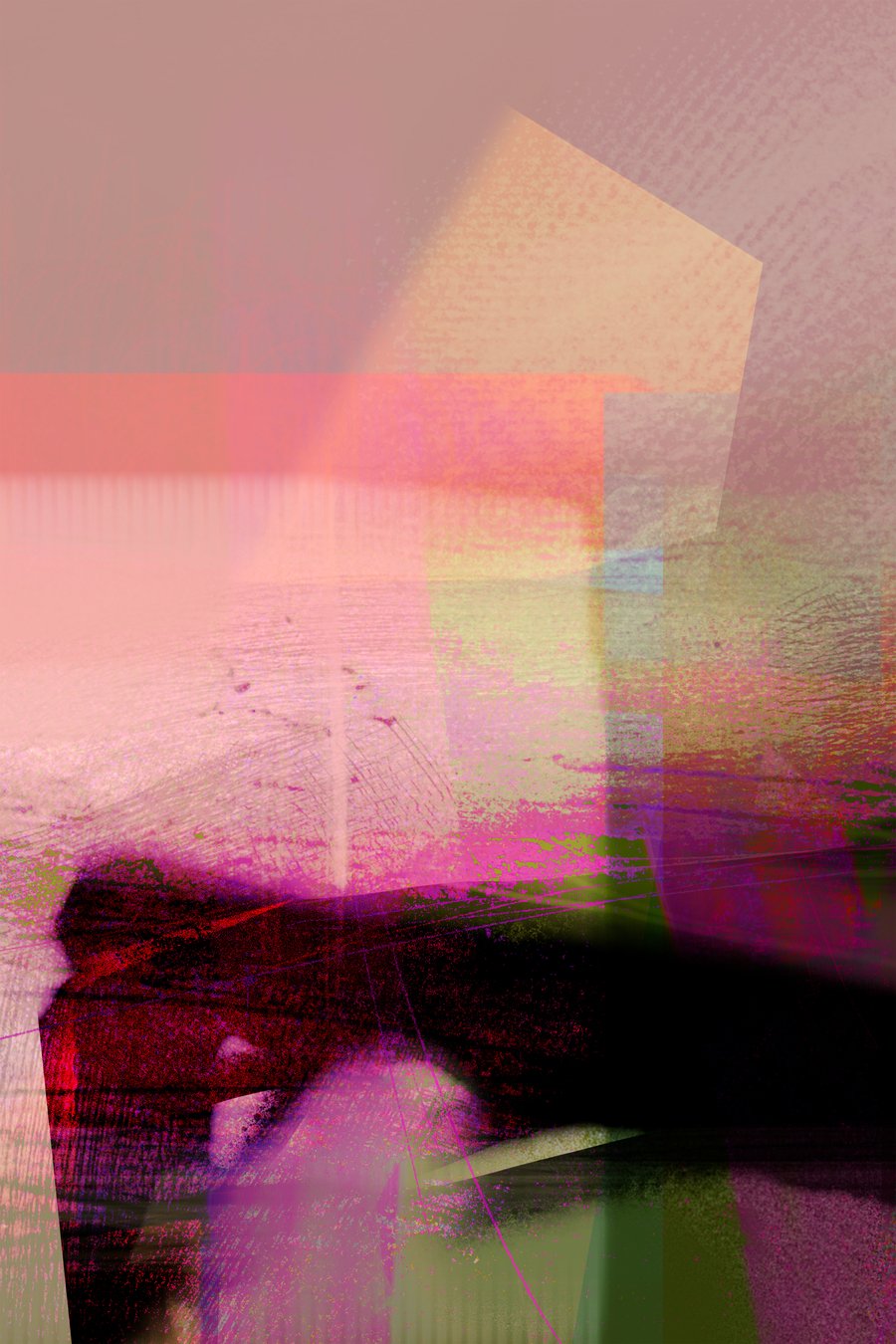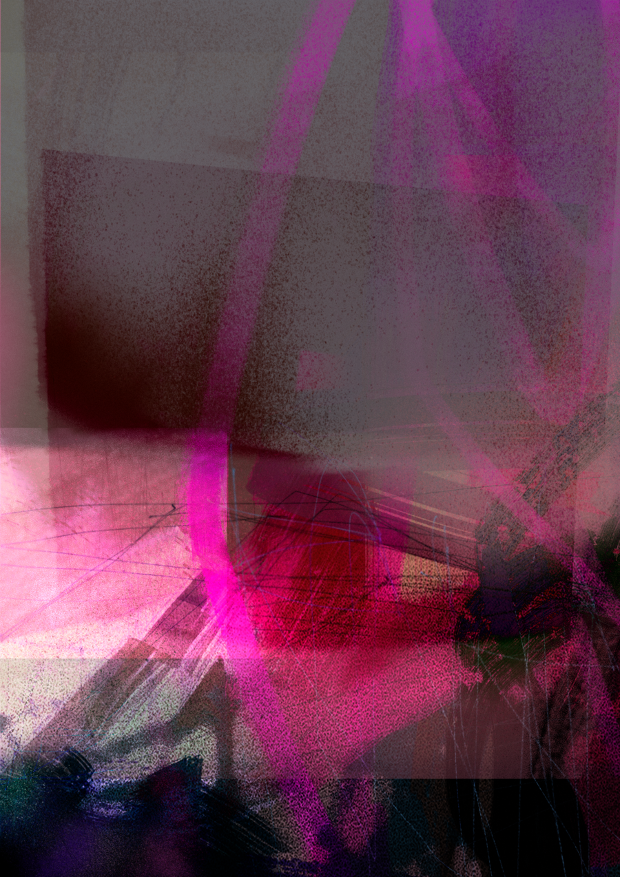 Мой метод работы — абстрактная цифровая живопись. В digital работах использую неоновые акценты и контрастные цвета, мерцание и световые шумы. Я создаю композиции путем наложения полупрозрачных слоев и вырезаю/сдвигаю фрагменты изображения.