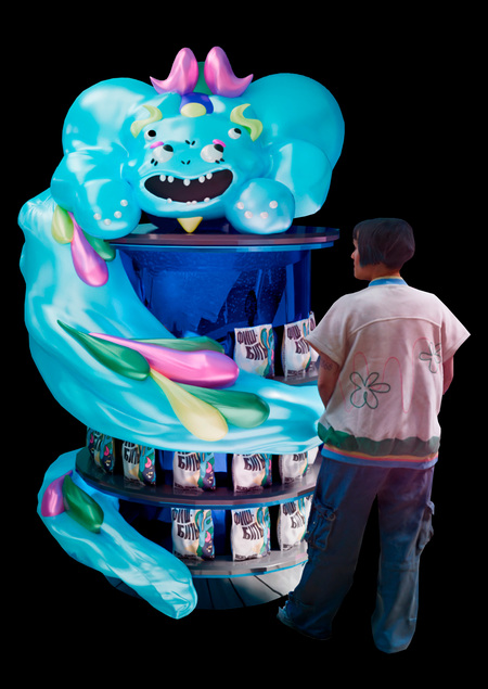 В рамках данного проекта я создала привлекательный стенд-аквариум с одним из персонажей фирменного стиля бренда.