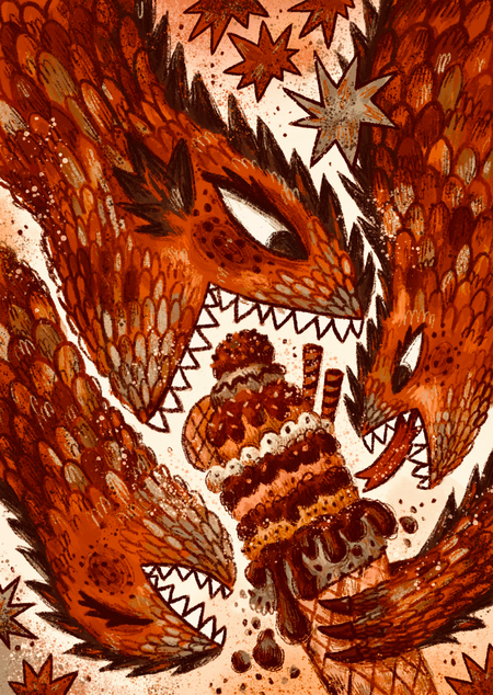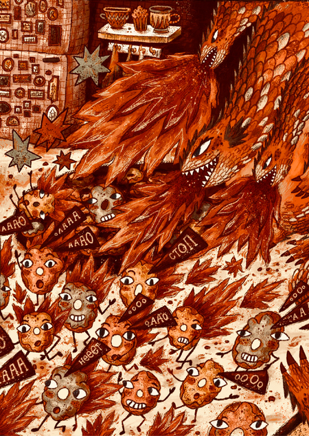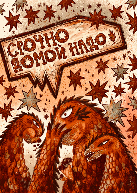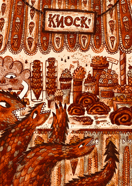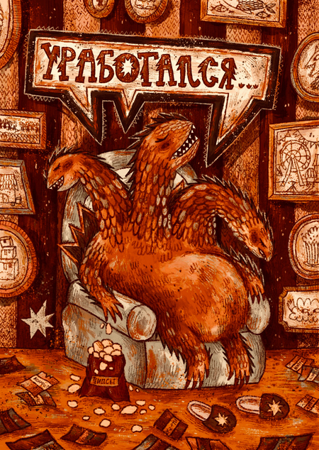 Главный герой серии открыток к праздникам — трехглавый фольклорный персонаж Змей Горыныч — слишком большой, слишком толстый, слишком колючий. Он просто сам по себе ≪чересчур≫! Именно этот нелепый дракон и будет попадать в слишком интересные ситуации, отражающие суть каждого праздника.