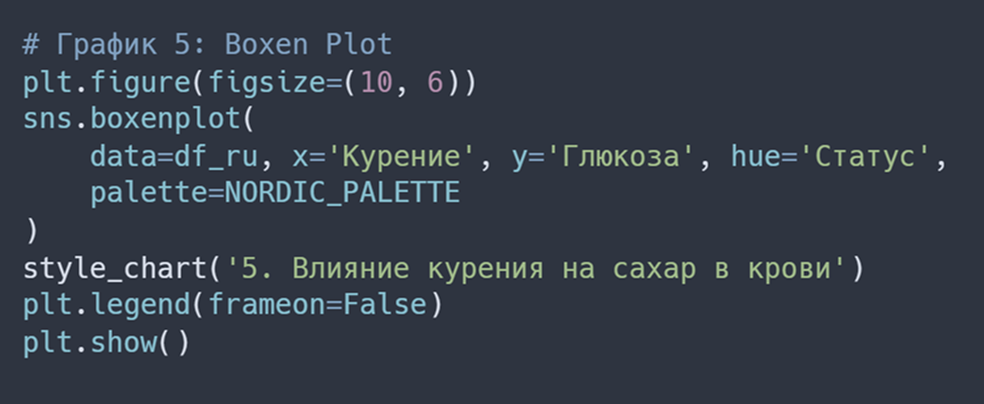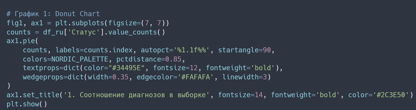 Для своего проекта я отказалась от примитивных пай-чартов. Для такой задачи нужны инструменты, показывающие плотность и распределение: KDE Plot (для возраста), Boxen Plot (для выбросов) и Heatmap (для корреляций).