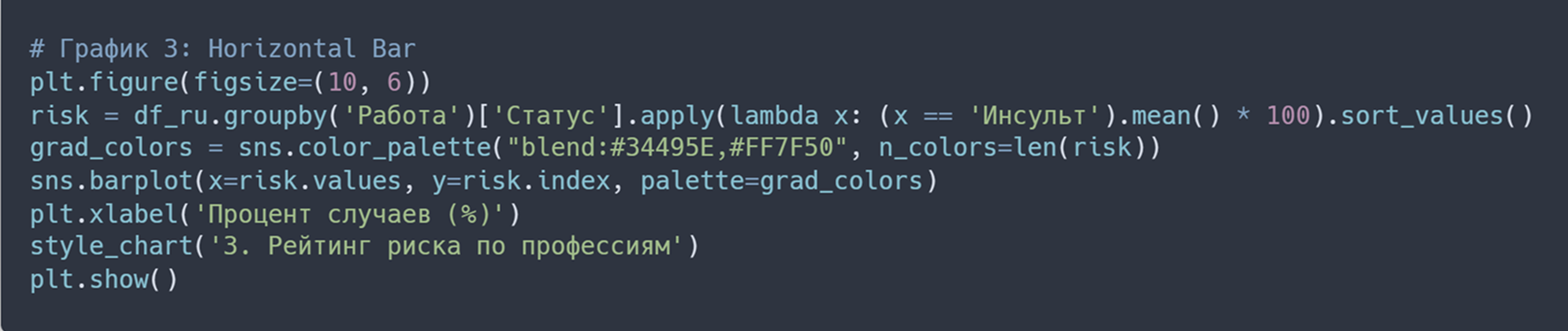 Инсульт часто воспринимается как внезапная катастрофа, но данные позволяют увидеть его как накопленный результат. Мне было важно проверить гипотезы: действительно ли «офисный планктон» рискует меньше, чем рабочие? И всегда ли лишний вес — это приговор? Этот проект — попытка уйти от поверхностных суждений к фактам, которые можно измерить и проверить.