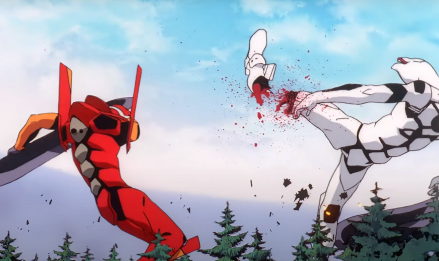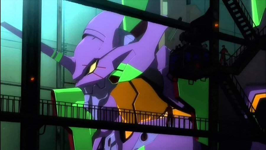 Первая сцена, показывающая Еву-01 в действии. Эпизод 2 «Neon Genesis Evangelion»