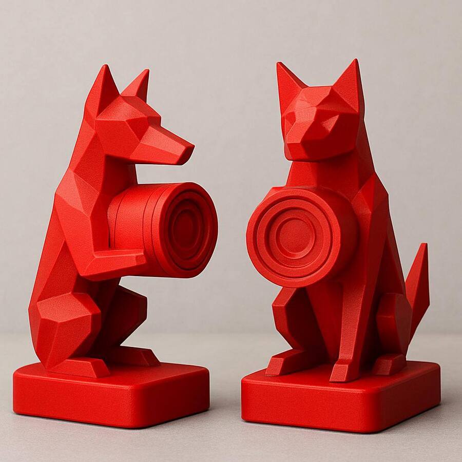 В проекте я выступал как автор идеи, дизайн конструктора и координатора производственного цикла. Провёл серию быстрых эскизов и 3D набросков (цикл идей от «собака с камерой» к цельному образу). Осознанно отклонил вариант, где фотоаппарат доминирует, чтобы не раздробить смысл, а выбрал решение целостного мотивa «симбиоза».