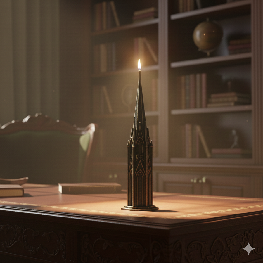 Идея серии «Архитектурные Эпохи» заключается в том, чтобы отразить историю западной цивилизации через эволюцию архитектурных стилей, используя каждый подсвечник как миниатюрное скульптурное воплощение ключевого периода. Свеча, стоящая на вершине, символизирует свет знания или просвещения, проходящий через века.