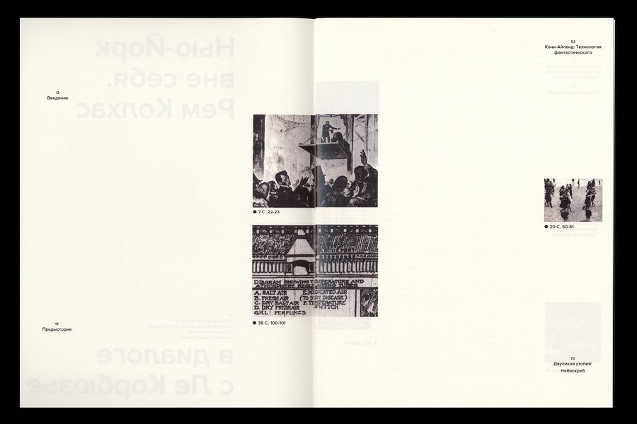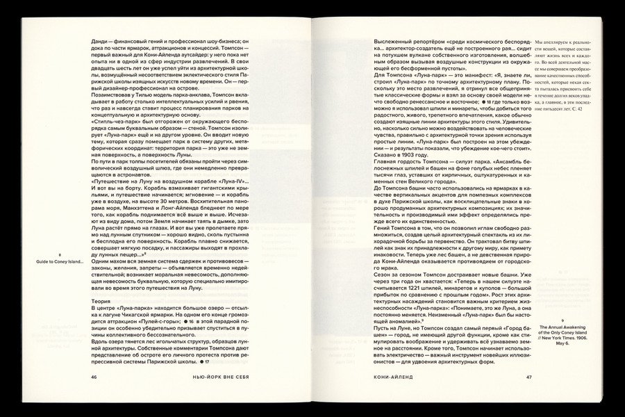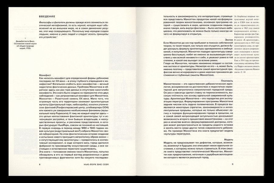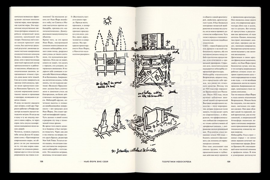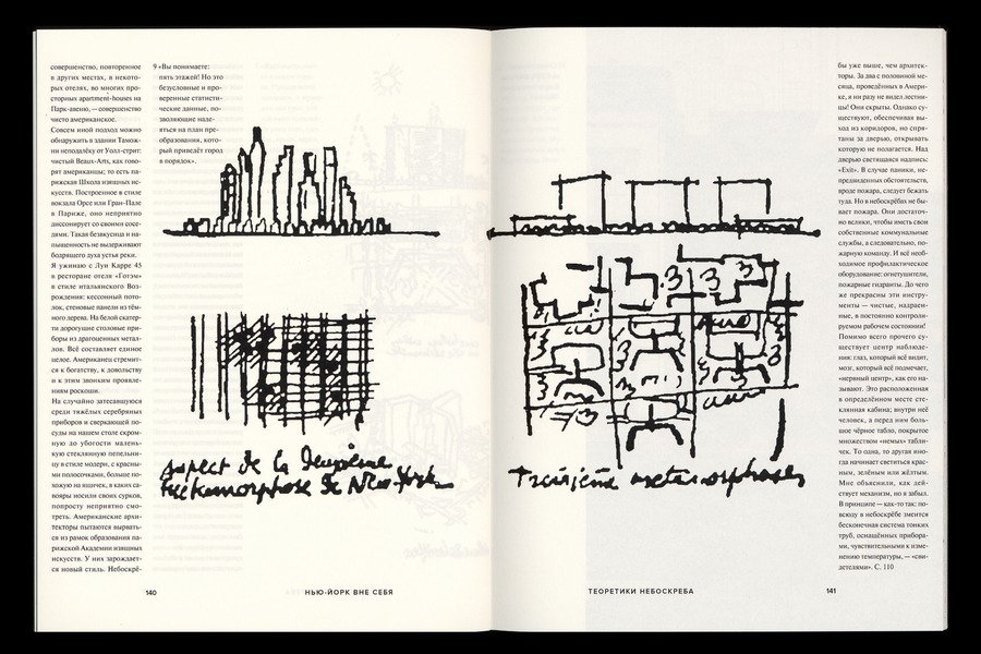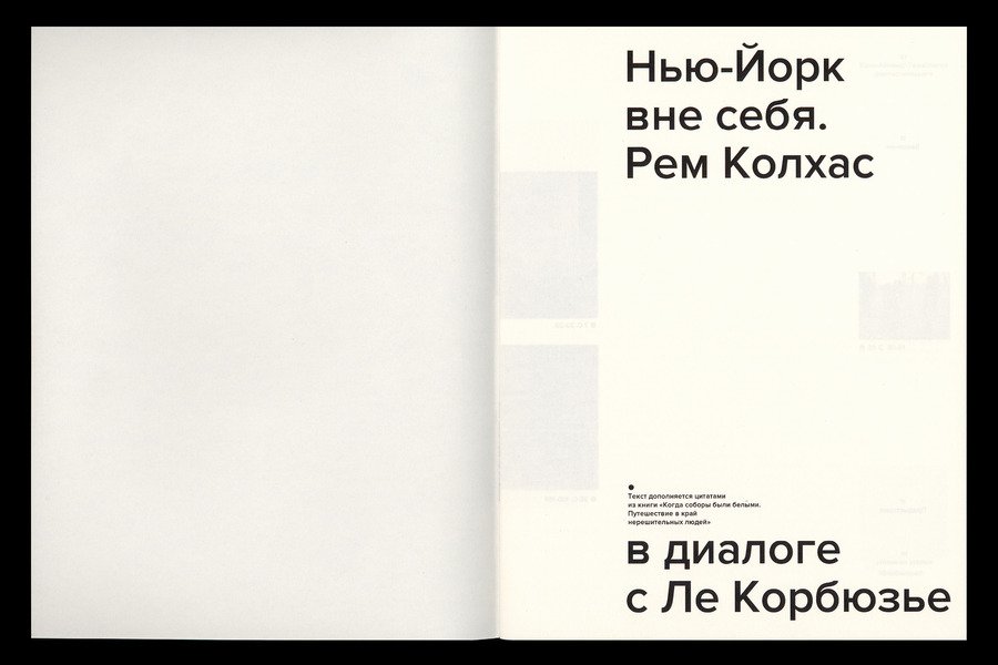 Проект состоит из книги и зина. Издание включает в себя главы из книги Рема Колхаса «Нью-Йорк вне себя», выстроенные в диалоге с текстами Ле Корбюзье из книги «Когда соборы были белыми». Комментарии Корбюзье вплетены в основной текст как параллельный голос — исторический, критический и провокационный.