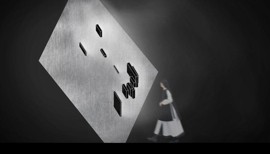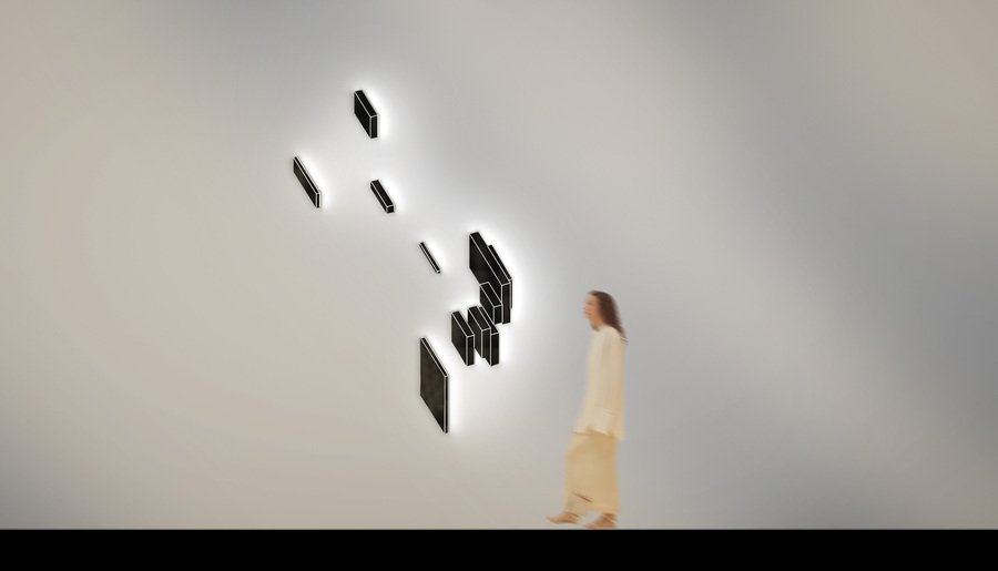 Таким образом прямолинейные плоскостные элементы переходят в объем и снова становятся плоскостью плоскостью, создавая уникальные композиции светильника.