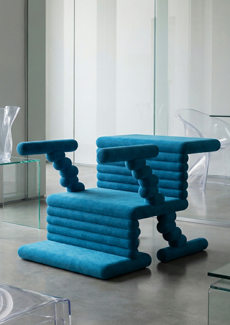 Rene Form — коллекция мебели и предметов интерьера из акцидентного шрифта Rene. Концепция строится на округлых модулях прямоугольниках 4:7