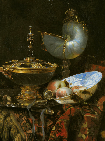 Раковины наутилуса высоко ценились в Европе XVII века как предметы коллекционирования и искусства. В натюрмортах кубок, созданный из такой раковины, демонстрировал статус и материальное благополучие, а также напрямую отсылал к мореплаванию. Он стал метафорой жизненного пути, где вера и разум — главные ориентиры.