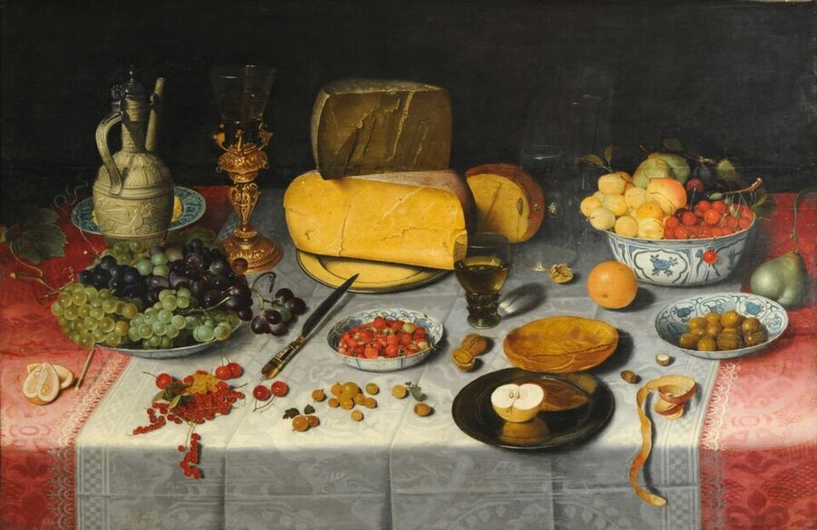 Первоначально на полотнах можно было увидеть типичные для голландцев продукты: сыр, фрукты, ветчину и хлеб. Со временем в композициях начали фигурировать угощения, свойственные торжественным событиям или столам зажиточных горожан: дичь, вино, пироги.