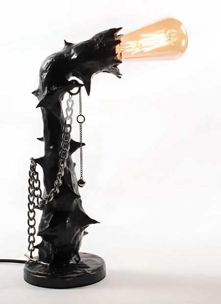 Светильник как символ внутреннего конфликта, где колькое тело внезапно становится проводником мягкого света. Это игра на контрастах: внешняя опасность формы против абсолютного уюта. Концепция строится на материальной метафоре внутреннего конфликта. «Колючее» тело светильника, набранное из острых элементов, служит структурой, через которую пробивается свет.