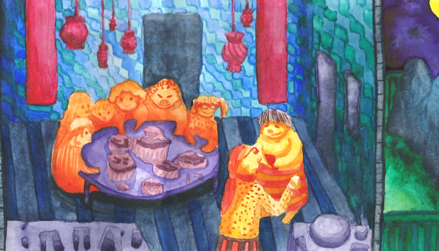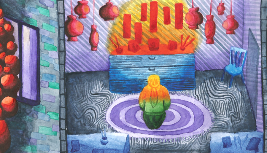 Графическая серия о праздновании Лунного Нового года в одной китайской семье: от приезда дочки из большого города, до просмотра праздника фонарей.