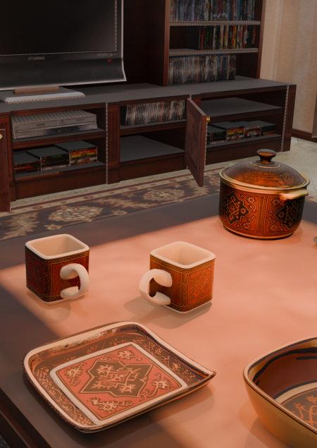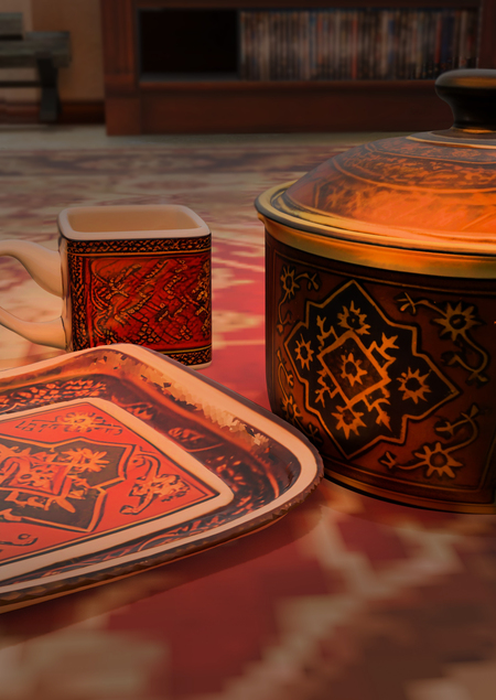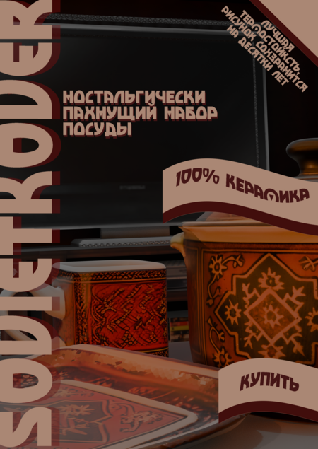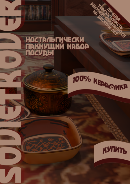 Идея: Нанесение графического паттерна советских ковров на современные, зачастую минималистичные или геометрические формы кухонной утвари.
