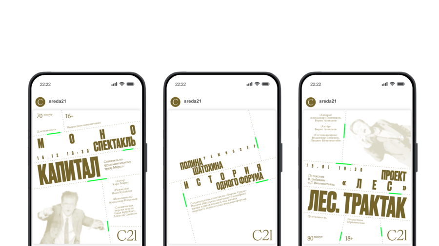 Московский театр «Среда 21» — это камерное пространство, где актеры и режиссёры свободны в самовыражении, а зрители открыты новому. Репертуар театра сочетает в себе как переосмысленные классические произведения, переложения философских трактатов, так и экспериментальные формы, например, театр форум или панк-кабаре.